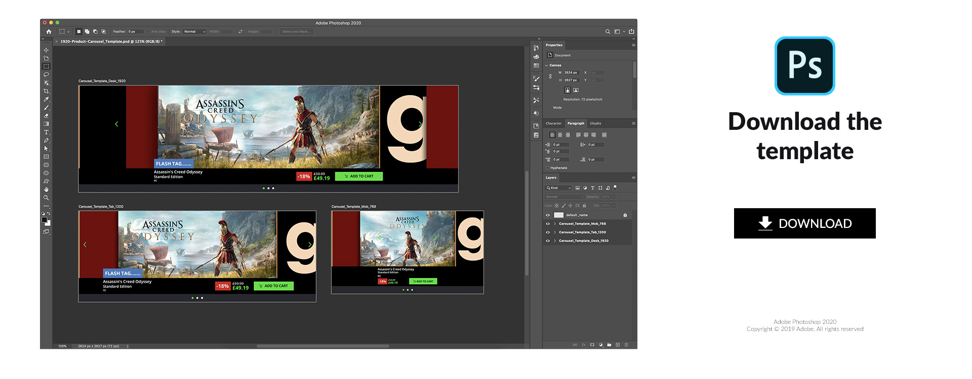 After succeeding with the product page redesign, the next thing on the list for the business was the homepage carousel, where the key products are advertised. This lengthy project involved tackling all the key elements that needed to be shown on the carousel, (such as price, game title and DRM), while not overwhelming the user with information. Maximising the space to showcase the game art was my priority, as I see this as the main selling point of any game, and this was also a key concern for the publishers that worked with us. Having said this, I also had to take into consideration user devices through Google Analytics and make the carousel stand-out without overshadowing the products below. I liaised with front-end developers to make sure the final details were as user friendly as possible, which included the timing of the carousel rotation, full responsive and localisation. The final iteration as shown above showcases everything I wanted to achieve and is still in use on the site today.